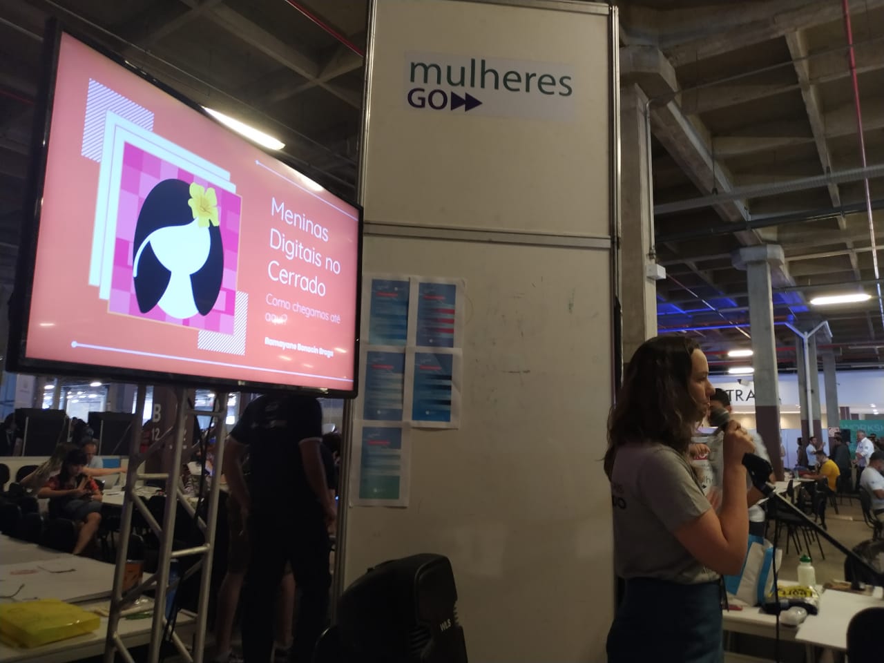 Docente Ramayane Braga, durante sua palestra acerca do projeto "Meninas Digitais no Cerrado", na comunidade MulheresGO. Créditos: Thalia Santana